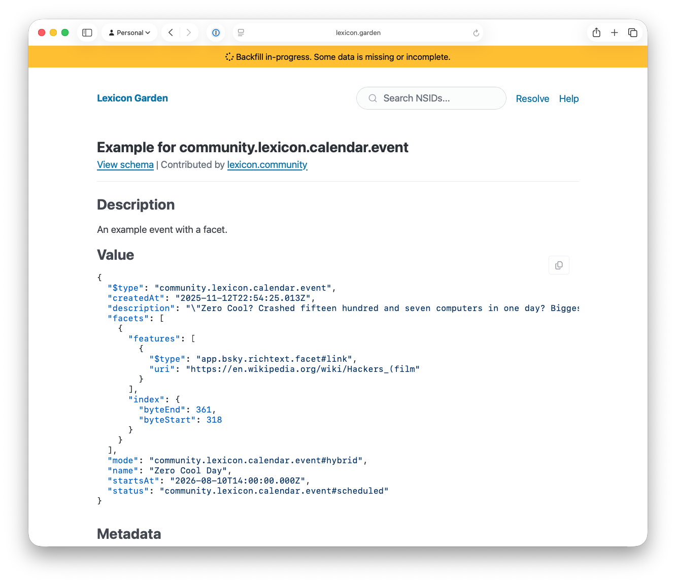 If you build on ATProtocol, you know how hard it can be to find lexicon schemas, make sense of their documentation, and locate useful example records. Maybe you noticed a new record type in a Bluesky post or came across an interesting NSID in a repository. After that, you have to search for the schema, learn about its fields, and see how it links to other lexicons. Until now, there hasn’t been a central place to browse, search, and learn about these schemas. That’s why I built Lexicon Garden.
