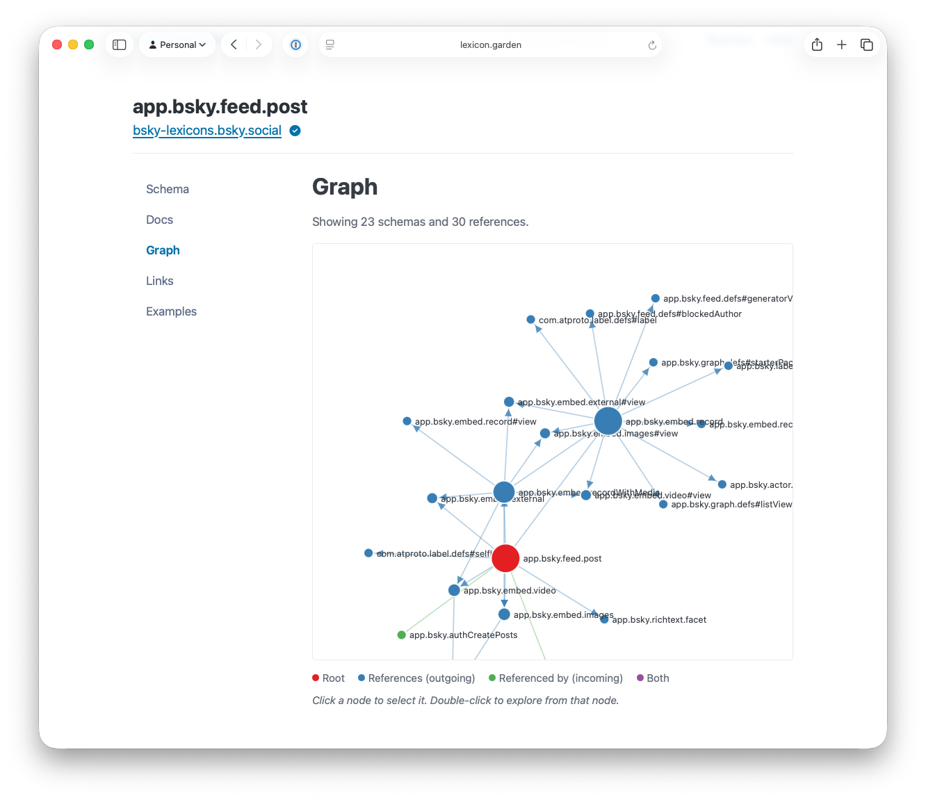 As Lexicon Garden indexes schema definitions and their examples, it creates a browsable graph that shows how lexicons are connected. This helps you see which types reference others and how they all fit together.