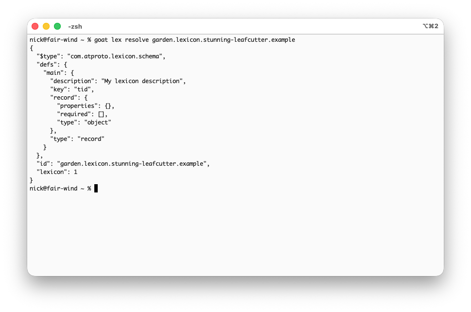 The main advantage is the garden.lexicon.* namespace. Your subdomain can be used as a base NSID. For example, if you choose "stunning-leafcutter," you can create lexicons like garden.lexicon.stunning-leafcutter.example or garden.lexicon.stunning-leafcutter.music.album. DNS entries are set up automatically, so lexicon resolution works right away. You don’t need to configure TXT records or wait for propagation. Just create a lexicon and start using it immediately.